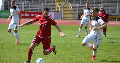 „Wir haben gestern gegen einen tollen Gegner gespielt, der in allen Belangen besser war wie wir. Der SSV hat fitnesstechnisch, mit seiner Struktur und seinem spielerischen Können sehr überzeugt“, meinte Cheftrainer Oliver Ofentausek nach der Begegnung. „Das Kräftemessen hat gezeigt, wo wir stehen und was wir tun müssen - gerade in punkto Fitness, Struktur und Spielniveau. Aber wir müssen auch reflektieren, dass wir gerade einmal eine Woche trainieren und Ulm hier schon viel weiter ist.“ Denn von Beginn an zeigten die sehr spiel- und laufstarken Spatzen, wer Gastgeber im Donaustadion ist. Mit tollem Pressing ließ der SSV den Rot-Weißen nur wenig Zugriffsmöglichkeit und Handlungsspielraum, war meist einen Schritt schneller und agiler am und gegen den Ball. Bereits eine Woche zuvor schoss Ulm so auch den bayerischen Regionalligisten FV Illertissen mit 8:0 aus dem Stadion. „Zwanzig Minuten haben wir aber gar nicht schlecht dagegen gehalten im ersten Durchgang“, so Ofentausek. Denn den Rot-Weißen gelang es, auch gegen den SSV offensiv Akzente zu setzen. So scheiterten Enes Demircan und Niko Maucher aus aussichtsreichen Positionen. Nach 45 Minuten stand dennoch ein klarer 3:0-Pausenstand für Ulm zu Buche.