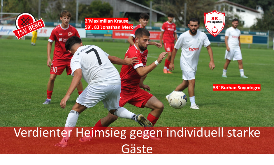 Der TSV Berg II bestätigt seinen erfolgreichen Saisonauftakt und gewinnt auch das zweite Spiel der Saison – diesmal mit 3:1 gegen den SK Weingarten, der nach der Auftaktniederlage erneut leer ausgeht.