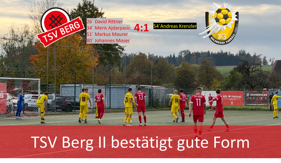 Fazit: Der TSV Berg II zeigte erneut eine geschlossene Mannschaftsleistung, dominierte über weite Strecken das Spiel und nahm die gute Form der letzten Wochen mit. Ein verdienter Sieg gegen einen starken Gegner.